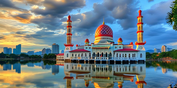 ※【粉紅(hong)水上清(qing)真寺】(約 20 分(fēn)鍾)該寺位于(yu)馬來西亞新(xin)行政中(zhong)心布城(cheng),整座寺有(yǒu)四分(fēn)之(zhi)三建(jian)築在(zai)布拉特湖(hú)上,也(ye)被人(ren)們稱爲(wei)水上清(qing)真寺。因其頂部(bu)花(huā)崗石砌成(cheng)的(de)粉紅(hong)色屋頂,視覺效果超棒。