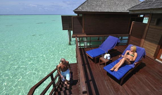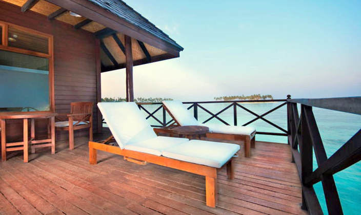 豪華水上别墅位于(yu)島嶼向海中(zhong)延伸區(qu)域(yu),每間房均設(shè)有(yǒu)向外延伸的(de)陽(yáng)檯(tai),陽(yáng)檯(tai)上有(yǒu)休閑躺椅,可(kě)進(jin)行日(ri)光浴。此外,還有(yǒu)一(yi)箇(ge)上浮平檯(tai),該平檯(tai)有(yǒu)一(yi)專(zhuan)用(yong)的(de)樓梯延伸入海中(zhong),可(kě)由此進(jin)行浮潛觀魚。