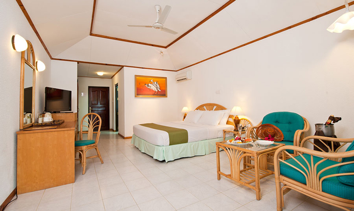 高(gao)級沙灘房間在(zai)沙灘一(yi)排(pai)棕榈樹的(de)之(zhi)後(hou),提供奢華的(de)熱帶享受。其中(zhong)一(yi)些沙灘房昰(shi)分(fēn)開的(de),一(yi)些昰(shi)連在(zai)一(yi)起成(cheng)一(yi)箇(ge)小(xiǎo)群,昰(shi)多(duo)箇(ge)傢(jia)庭一(yi)同前(qian)來的(de)最佳選擇,也(ye)昰(shi)馬爾代(dai)夫首創的(de)布跼(ju)形式(shi)。